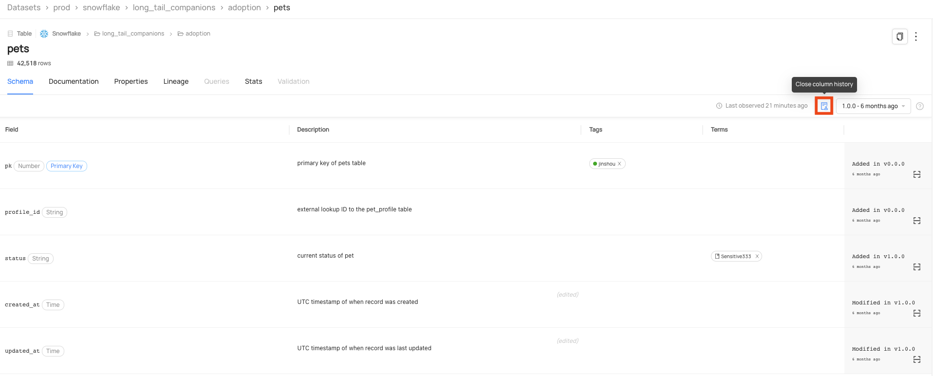 Schema History is a valuable tool for understanding how a Dataset changes over time and gives insight into the following cases, along with informing Data Practitioners when these changes happened.